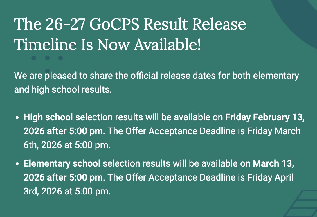 GoCPS announced that results for the 2025-2026 school year application will be released in the GoCPS portal on: March 14,…